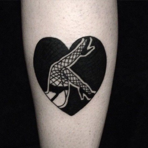 女生锁骨下黑灰素描点刺技巧创意比心纹身图片