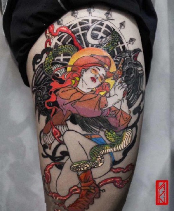 日式好看的一组暗黑女郎纹身图片