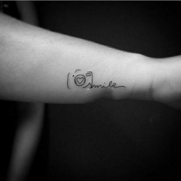 手指上纹身小图案 女生手臂上黑灰色的相机纹身图片