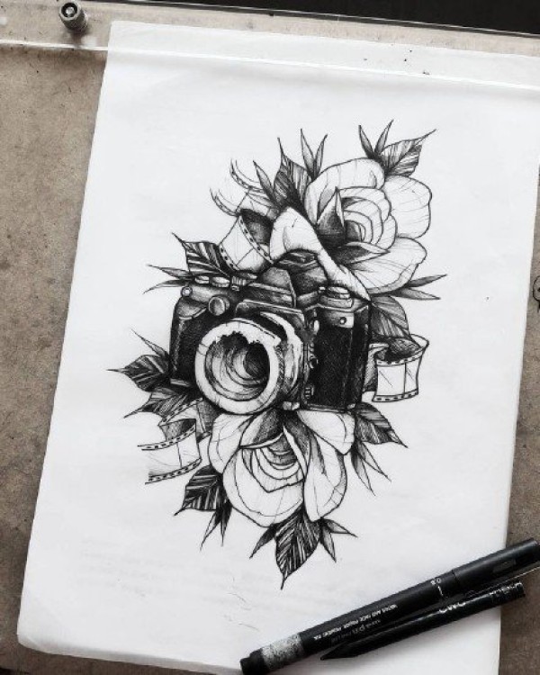 2相机纹身:摄影师很喜欢的相机纹身图案9张