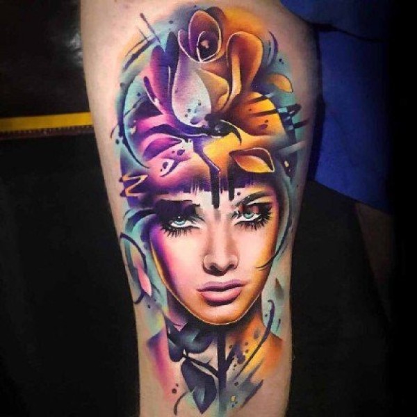 欧美写实风格的黑灰女郎人像纹身作品9张