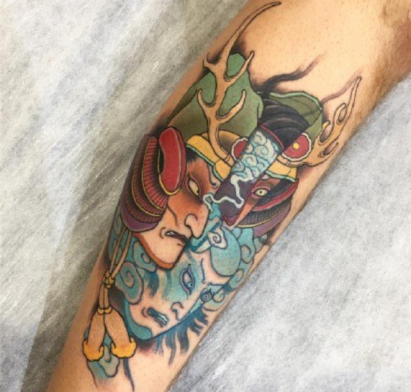 能面万媚纹身手稿_52张日式能剧面具纹身手稿图案素材欣赏