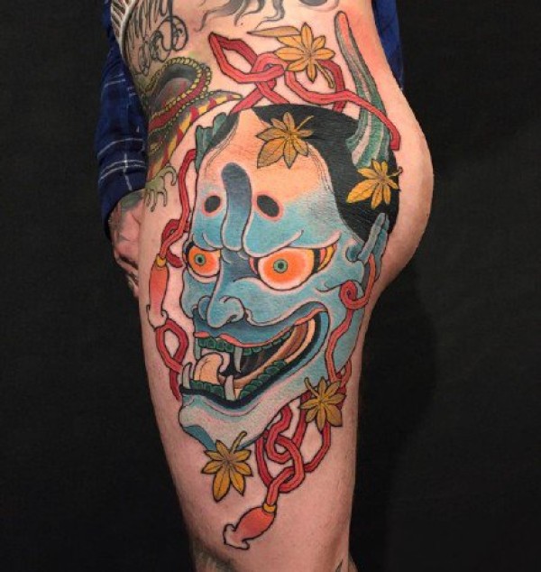 传统花腿纹身--18张传统风格的大花腿纹身图案作品