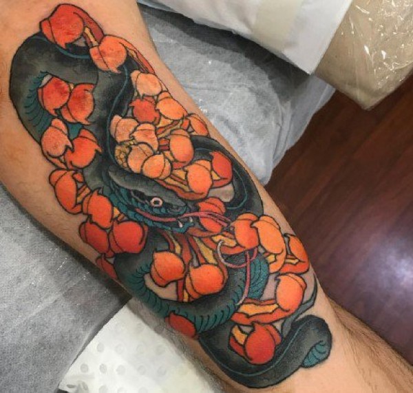 传统花腿纹身--18张传统风格的大花腿纹身图案作品