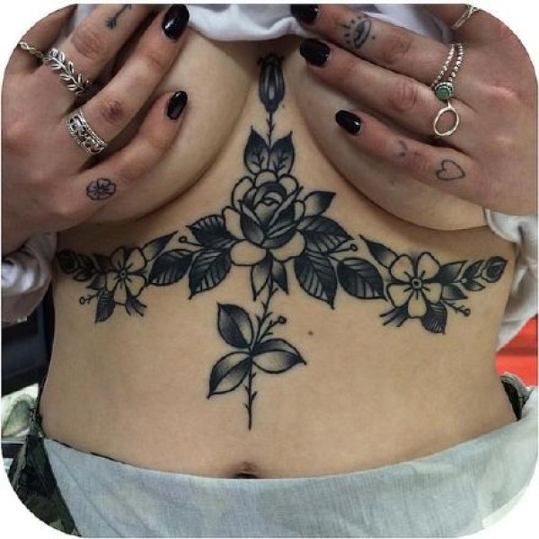 女性大花胸纹身_43张霸气漂亮的女性大花胸纹身图案作品