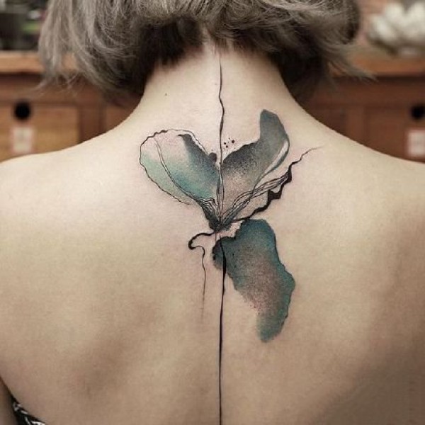女生后背部脊椎处唯美的小清新纹身图