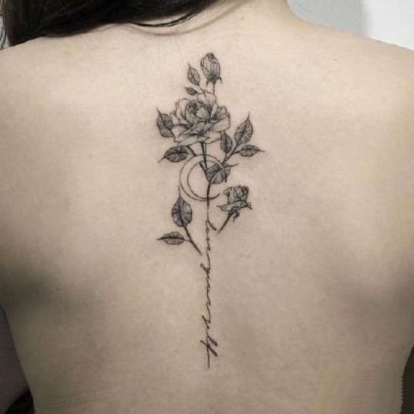 女生后背部脊椎处唯美的小清新纹身图