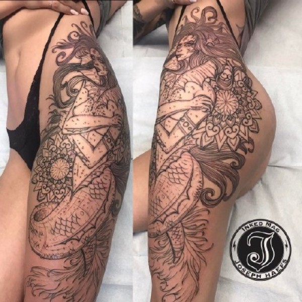 腿部纹身女 9组女性大腿侧部性感纹身作品图