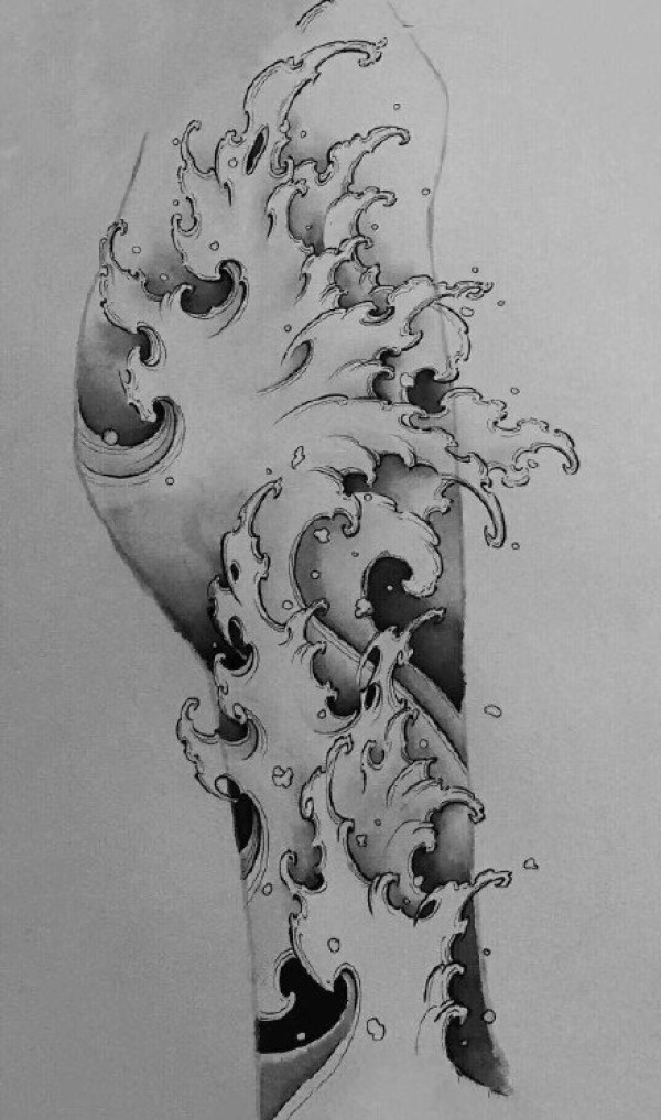 浪花纹身图案-创意精致的夏日气息十足的文艺唯美浪花纹身图案