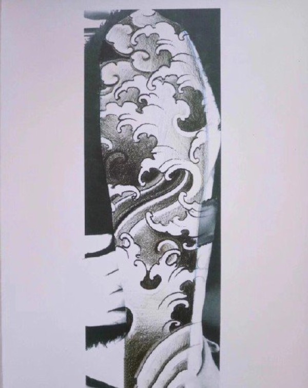 谭维维纹身花臂 明星手臂上黑灰色的浪花纹身图片