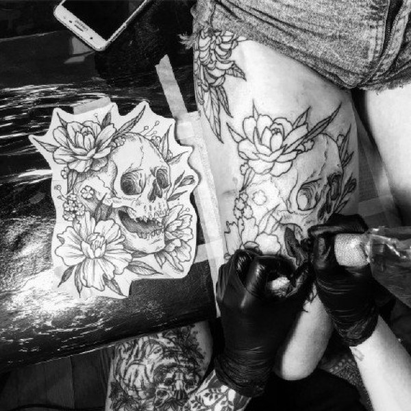 侧腰女骷髅刺青图案图片_骷髅纹身图案大全_纹身图吧