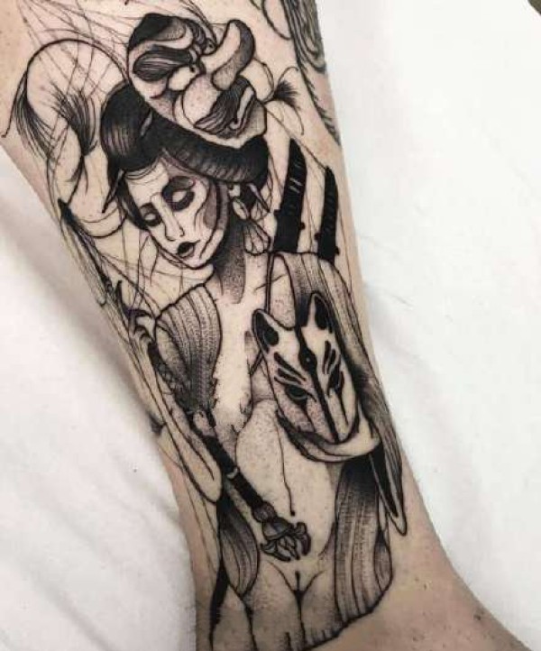 能面万媚纹身手稿_52张日式能剧面具纹身手稿图案素材欣赏