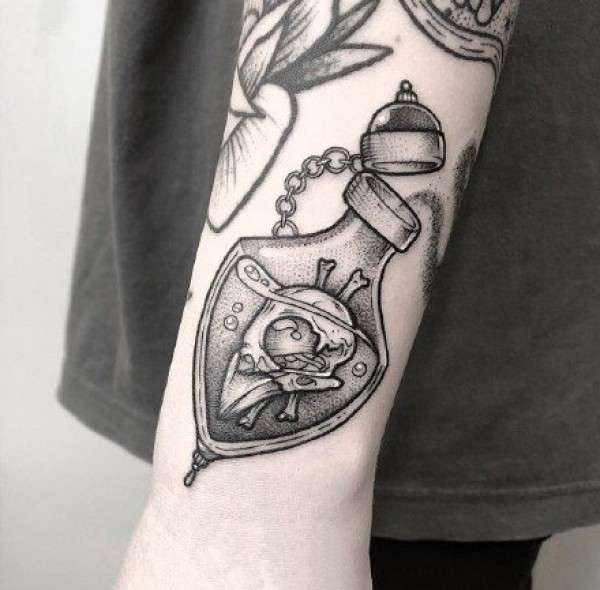 心脏纹身图案 女生手臂上黑灰纹身心脏纹身图案