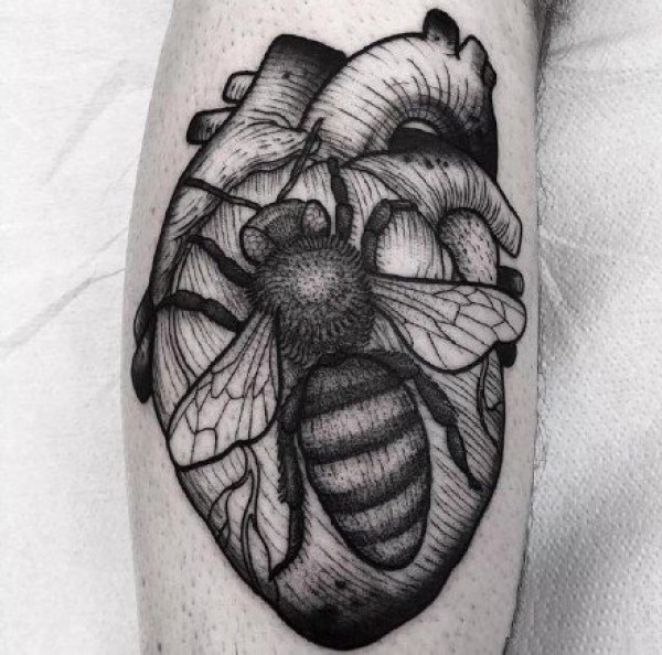 心脏纹身图案 女生手臂上黑灰纹身心脏纹身图案