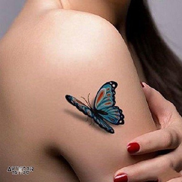 女性喜欢的漂亮的3D立体蝴蝶纹身图案