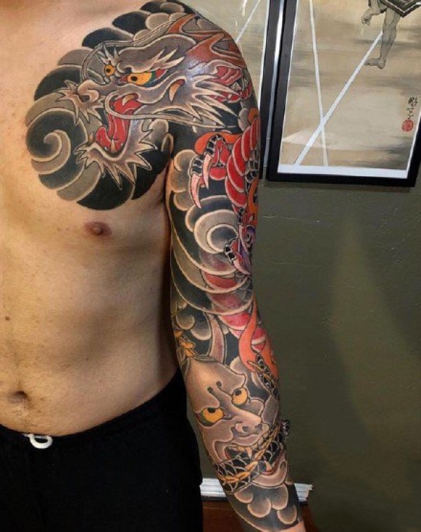 日式手彫刺青作品—半甲龙很感谢客户认可手彫刺青,手彫是日本纹身的手工雕刻技术,时间可以追溯到日本17世纪的江户时代。19世纪,手彫技术被日本黑帮挪用,被用作入会仪式,象征着从此就是江湖中人。在日式传统