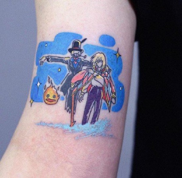 手臂臂环纹身和赤裸天使,蓝色羽翼