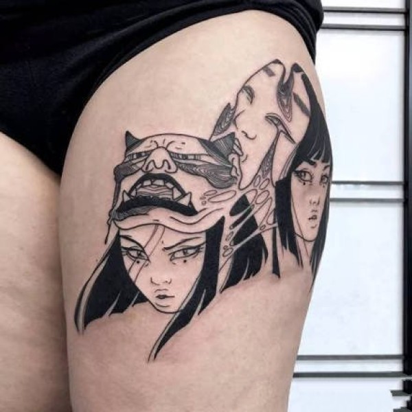 能面万媚纹身手稿_52张日式能剧面具纹身手稿图案素材欣赏