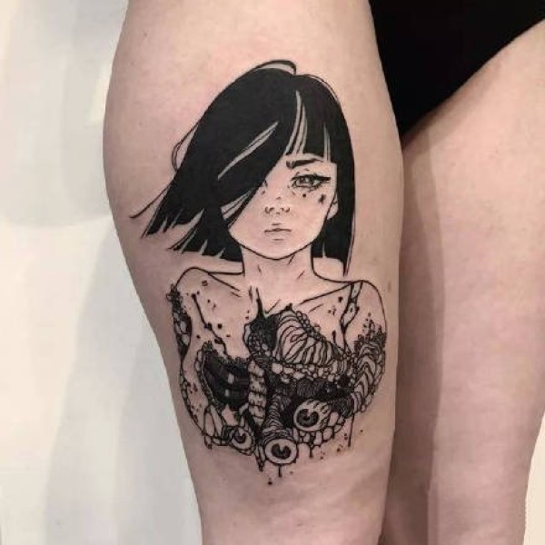 艺伎纹身--一组独特创意的日式艺妓纹身图案作品