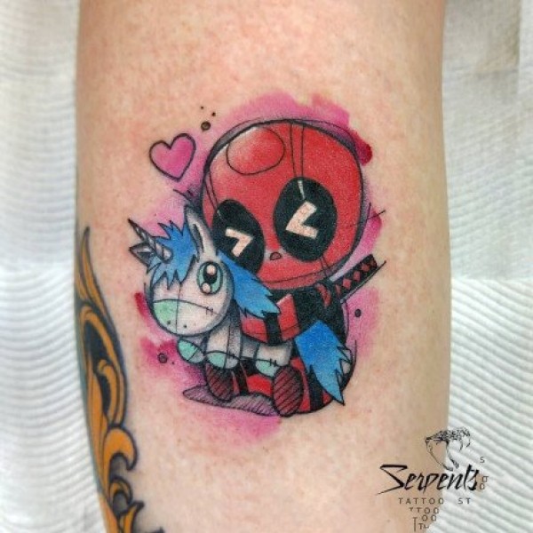 卡哇伊的漫威角色卡通水彩纹身图片