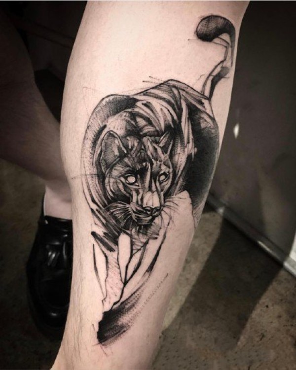 花腿纹身--一组大黑腿纹身图案作品欣赏