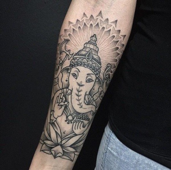 手臂黑灰象神_一组12张手臂上的黑灰象神纹身图案作品欣赏