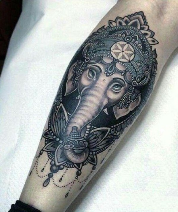 手臂黑灰象神_一组12张手臂上的黑灰象神纹身图案作品欣赏