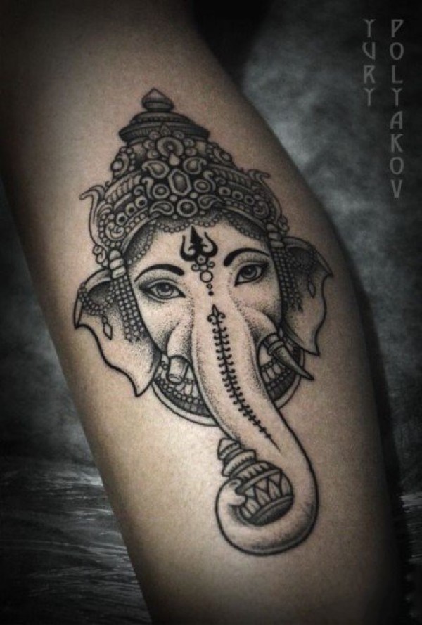 手臂黑灰象神_一组12张手臂上的黑灰象神纹身图案作品欣赏