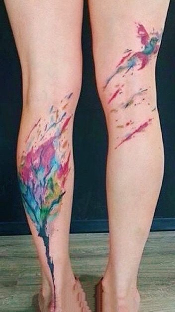唯美的腿部水彩色漂亮纹身图片