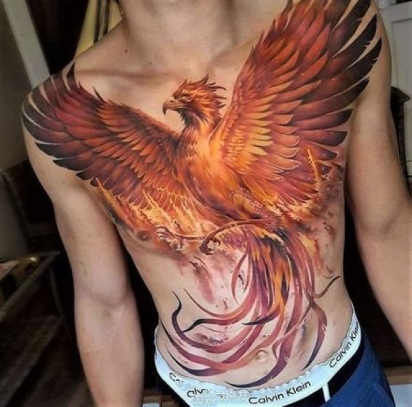 时尚美女胸部性感鸽子血火凤凰纹身图片