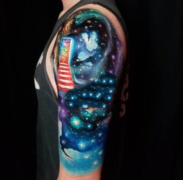 宇航员纹身图案--9张彩色宇航员星空星球宇宙纹身作品