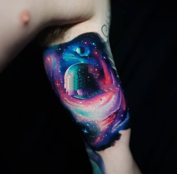一组炫彩色星空星球宇宙相关的纹身图案作品