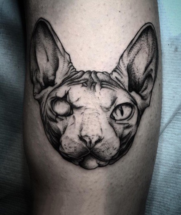 斯芬克斯猫的一组黑灰猫纹身图片