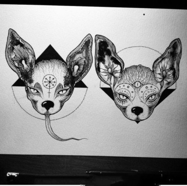 一组18张漂亮的欧美newschool动物纹身手稿图案