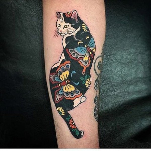 手背猫纹身:9张大花手背的猫纹身图案赏析