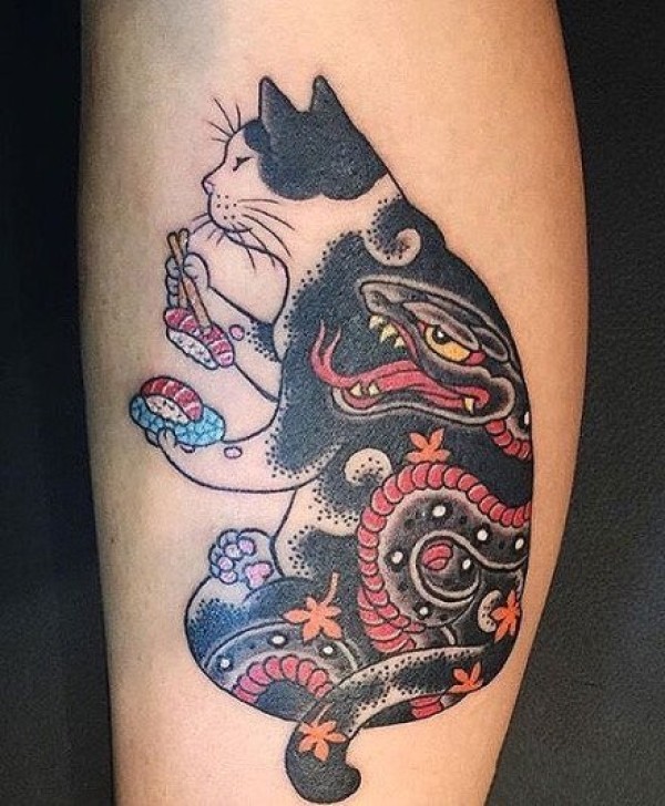 9张日式风格的纹身大猫图案