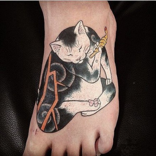 手背猫纹身:9张大花手背的猫纹身图案赏析