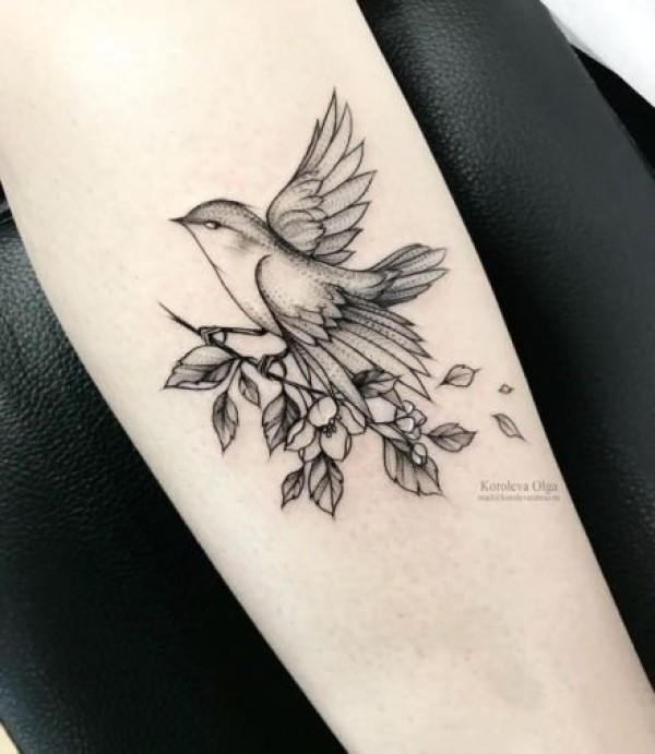 鸟纹身图案 身体各部位鸟和花朵搭配的鸟纹身图案