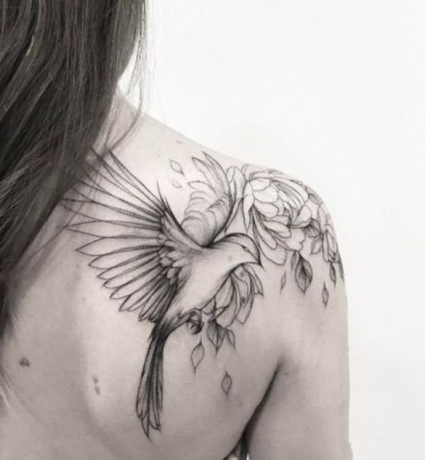 鸟纹身图案 身体各部位鸟和花朵搭配的鸟纹身图案