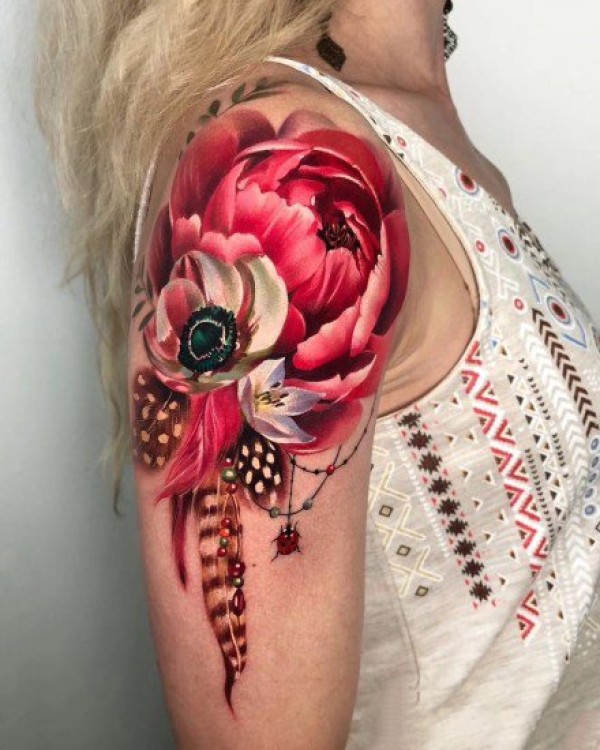 复古骷髅玫瑰肩部纹身_玫瑰花纹身图案大全_纹身图吧