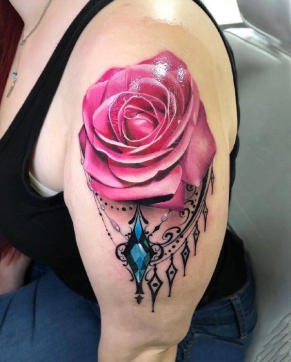 娇艳玫瑰手臂纹身_玫瑰花纹身图案大全_纹身图吧