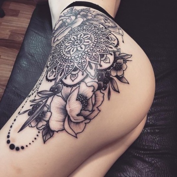腿部纹身女 9组女性大腿侧部性感纹身作品图