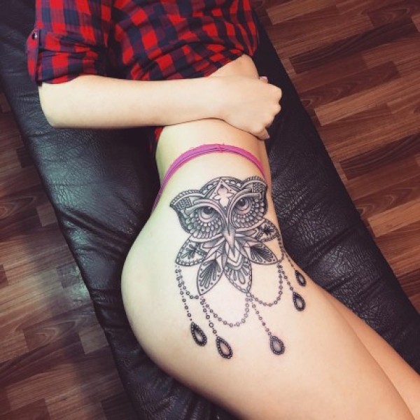 腿部纹身女 9组女性大腿侧部性感纹身作品图