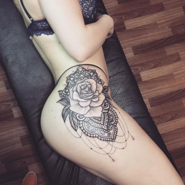 腿部纹身女 9组女性大腿侧部性感纹身作品图