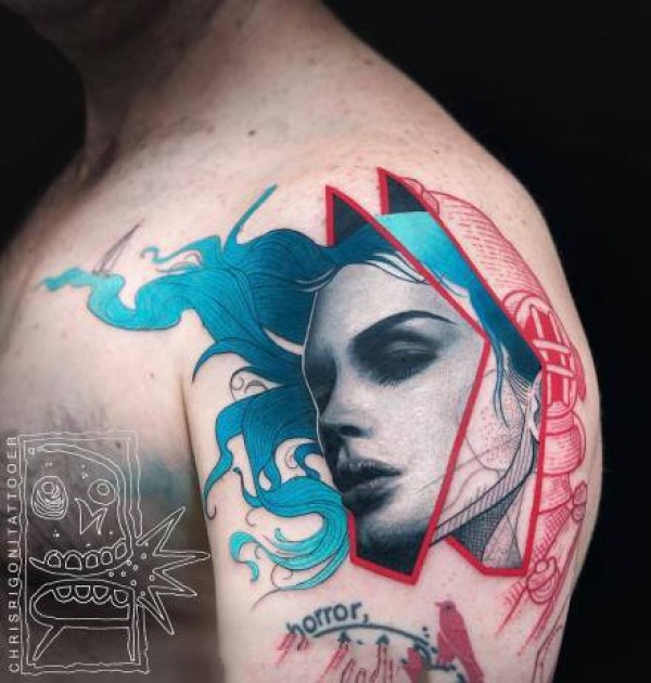 欧美写实风格的黑灰女郎人像纹身作品9张