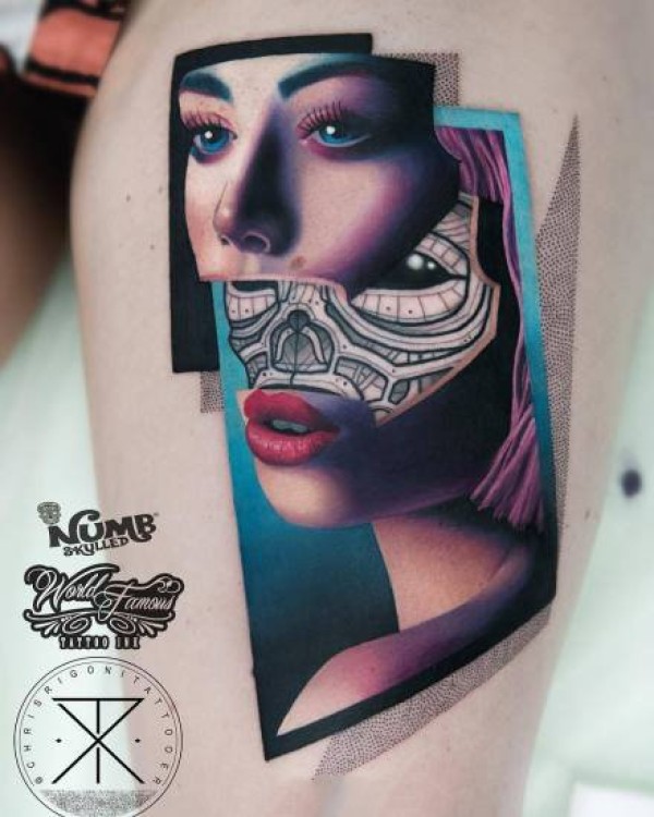 抽象与写实相结合的美女人像纹身图片