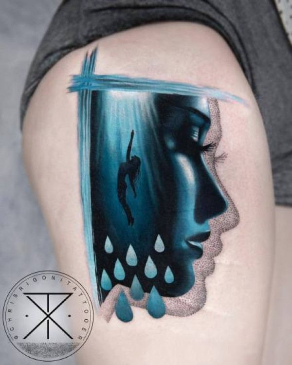 欧美黑灰写实纹身:大臂和大腿上逼真的欧美3d写实纹身图案