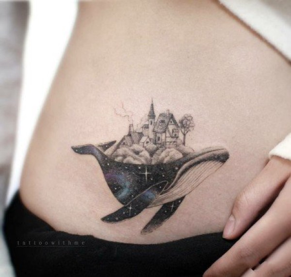 9张唯美的星空和鲸鱼搭配的纹身图案