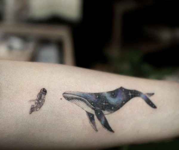 9张唯美的星空和鲸鱼搭配的纹身图案
