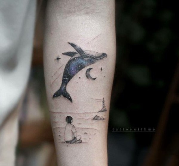 9张唯美的星空和鲸鱼搭配的纹身图案